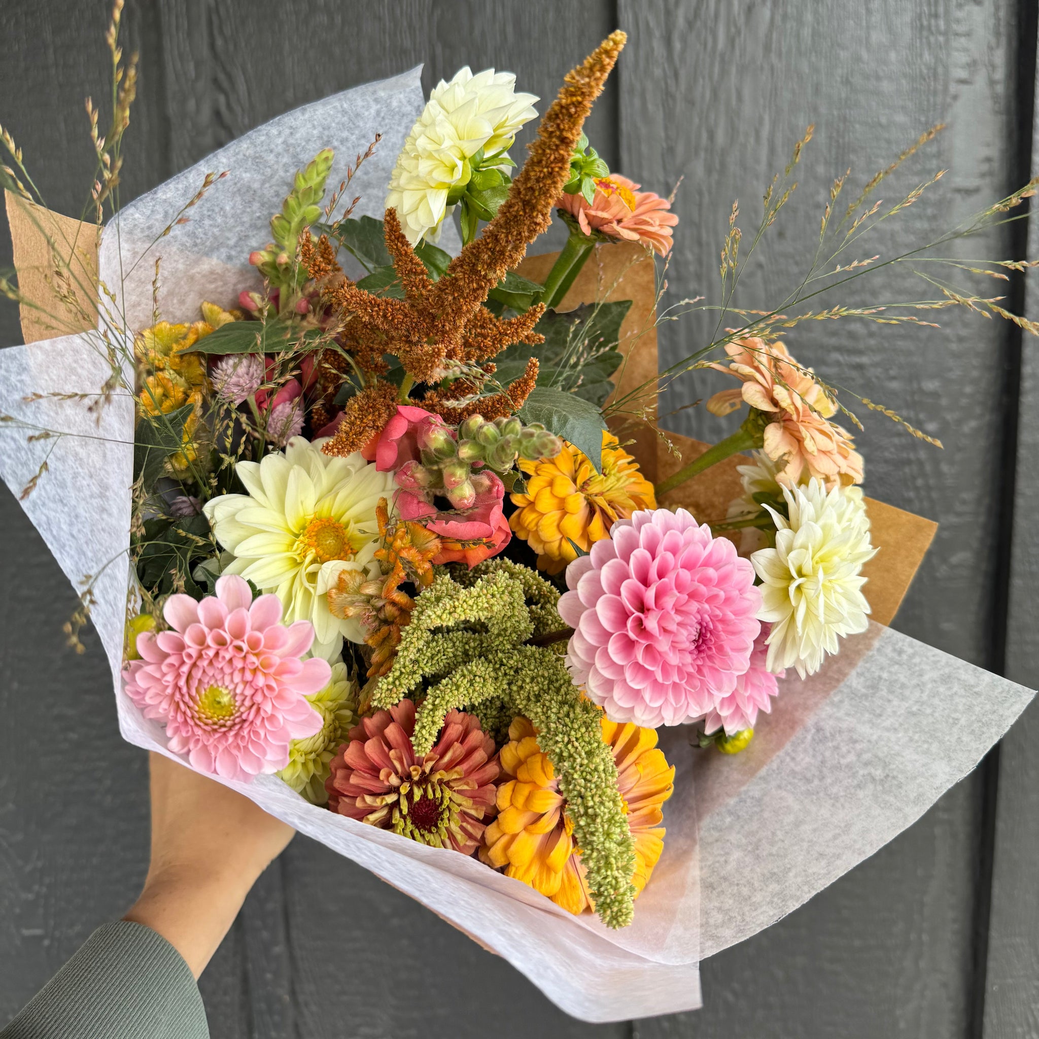 Our monthly bouquets kick-off in May with specialty tulips and end in September with dahlias. Bouquets will be ready for pick-up at the farm the first or second Tuesday of each month and will be wrapped in a Kraft paper sleeve and ready to take home to put in your vase of choice.